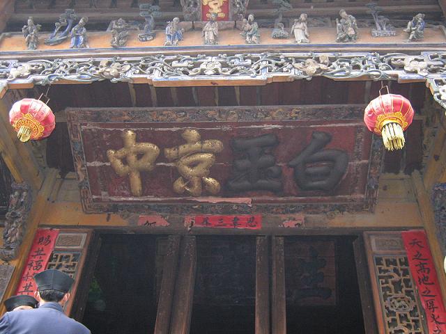 匾额是指悬置于门振之上的题字牌,楹联是指门两侧柱上的竖牌。匾额中的题字往往是取自现有的诗词、典故、典籍或惯用语等。匾额正文字数一般以三字和四字为多。除特殊的匾额,如圣旨匾,大多数匾额的正文字数不会太多。而楹联则是要依景依情而写,抒发胸臆。因此楹联字数不限,讲究词性、对仗、音韵、平仄、意境情趣,是诗词的演变。楹联往往与匾额相配,或树立门旁,或悬挂在厅、堂、亭、榭的楹柱上。